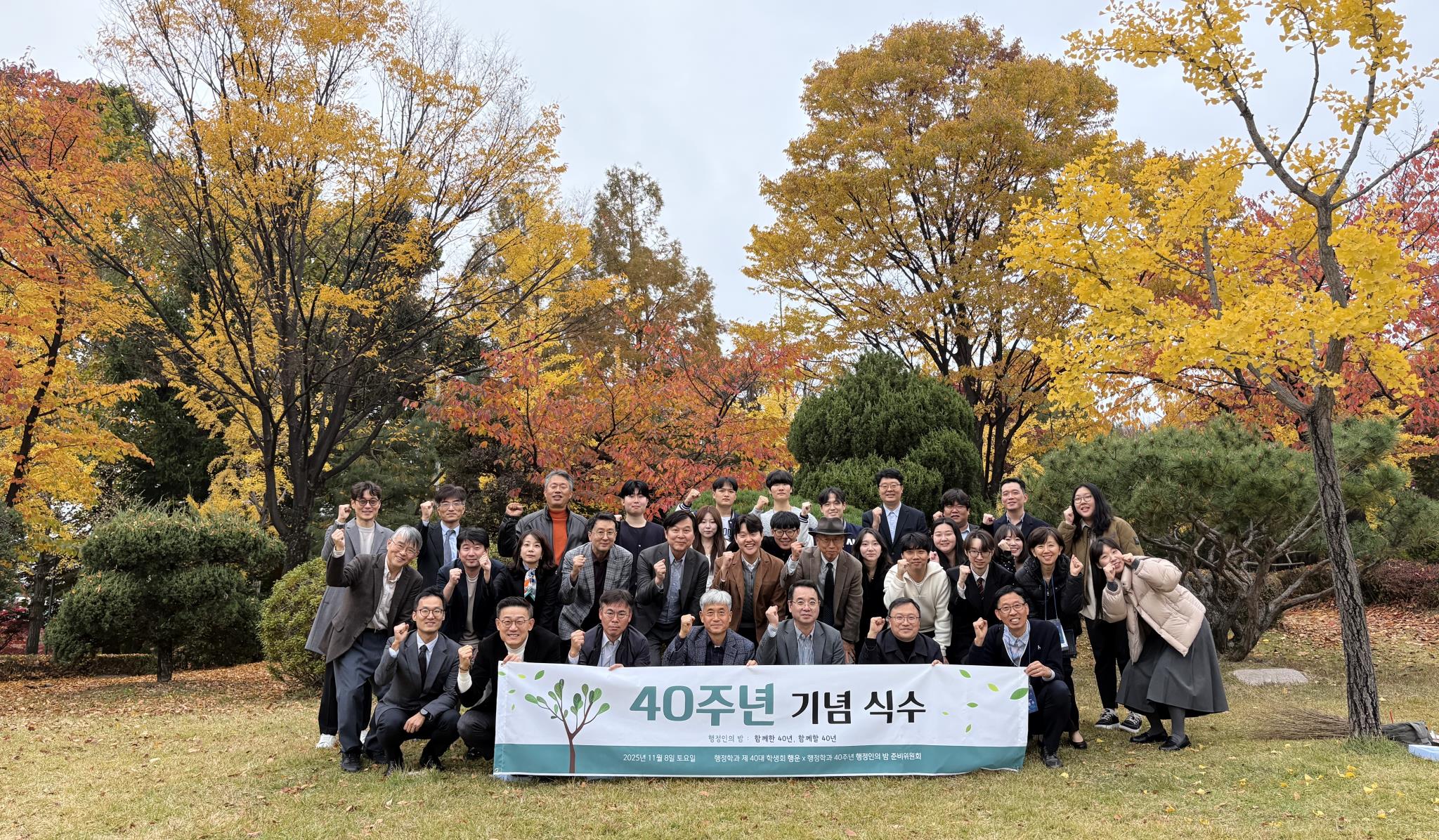 40주년 기념 식수 후. 학과 탄생 20주년과 30주년을 기념하는 나무들과 나란히 함께했다