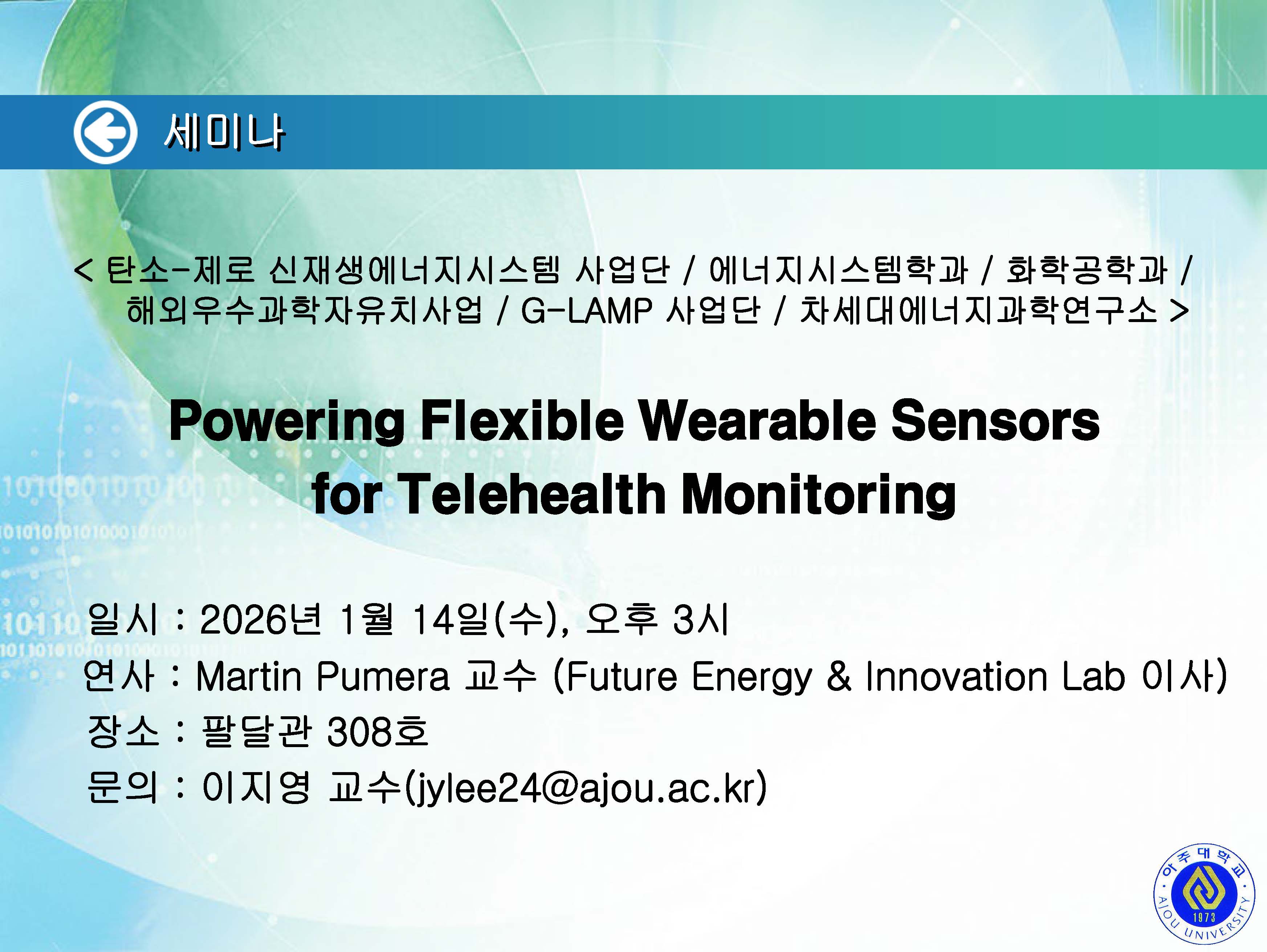 [2026.01.14.수] 탄소-제로 신재생에너지시스템 사업단 / 에너지시스템학과 / 화학공학과 / 해외우수과학자유치사업 / G-LAMP 사업단 / 차세대에너지과학연구소